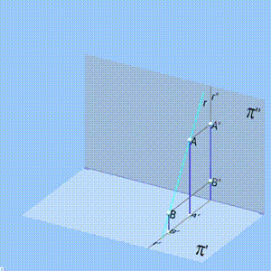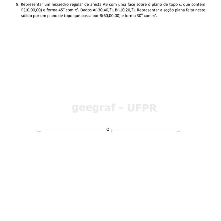 Representamos o segundo traço do plano de topo c que contém a reta CD e faz 30° com π'.